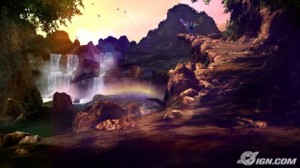 Now, my demo was using Wii MotionPlus, but you won’t have to if you don’t have the accessory. Personally, I didn’t see the hunter following the actions of the Wii-mote on a one for one basis when he’d get into combat and start swinging, but you can use the controls for different stuff later on. One example I saw came when the hunter found an electrified door blocking off the entrance to a bridge over a large chasm. If you don’t have Wii MotionPlus, you can travel along the rock ledges to the right for some classic platforming, but if you do have the add-on, you can take control of a hornet (He’s one with nature!) and pilot the bug through a hole in the fence to shut down the generator by moving the controller.