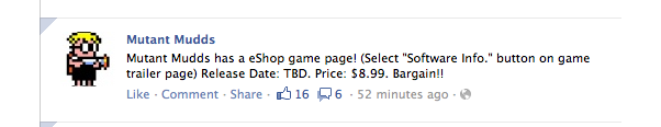 Looks like Mutant Mudds has become one-step closer to release. Nintendo has announced the release price for Mutant Mudds at $8.99. You can check it out on the Nintendo eShop channel.