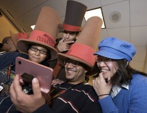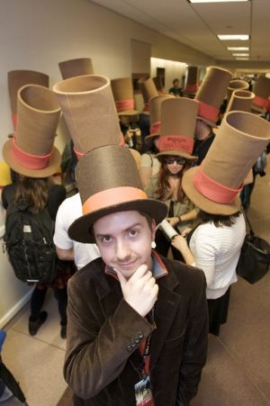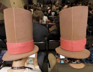 Nintendo Professor Layton 10-14 Event PHOTO 3: In this photo provided by Nintendo of America, New York Comic Con attendees enjoy hands-on time with the Professor Layton and the Last Specter game for the Nintendo DS family of systems on Oct. 14, 2011, while attending a North American premiere for the animated feature film Professor Layton and the Eternal Diva. Attendees played the game, enjoyed special snacks and received signature Professor Layton top hats.
