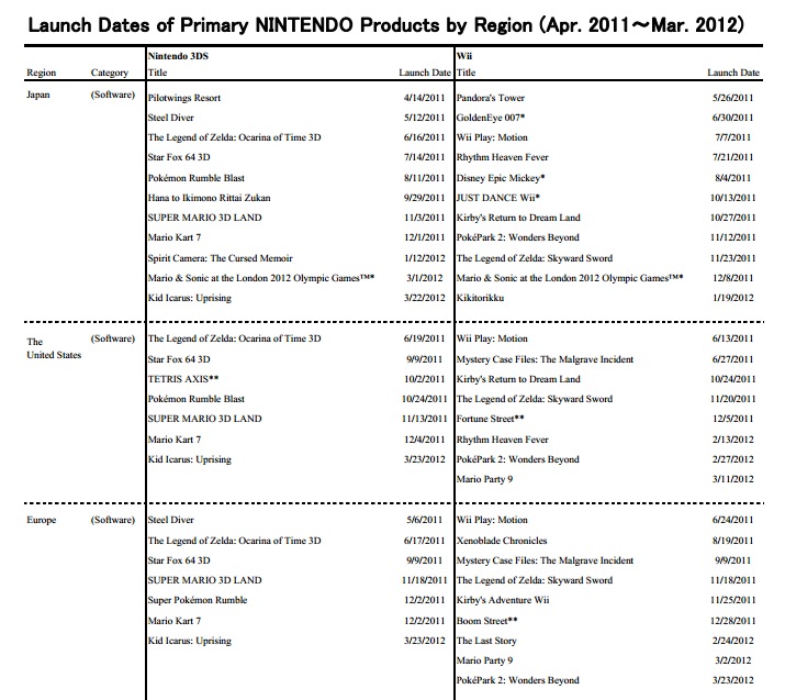 Nintendo’s Fiscal Year investor’s briefing – updated release dates
