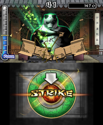 After so many correct button presses, players are presented with a chance to “show them your power”, which is considered the “finishing move” of the level. By correctly timing your taps with the ring, the panda will release a dynamic, electrified strike towards whatever material has been chosen for the chopping. Each level has a new and interesting material for players to match up against, but this ultimately feels like wasted effort, as the chopping animation never changes from level to level, and every piece of material broken falls in almost the exact same way. The satisfaction of watching planks crumble before me washed away after conquering the entirety of easy mode.