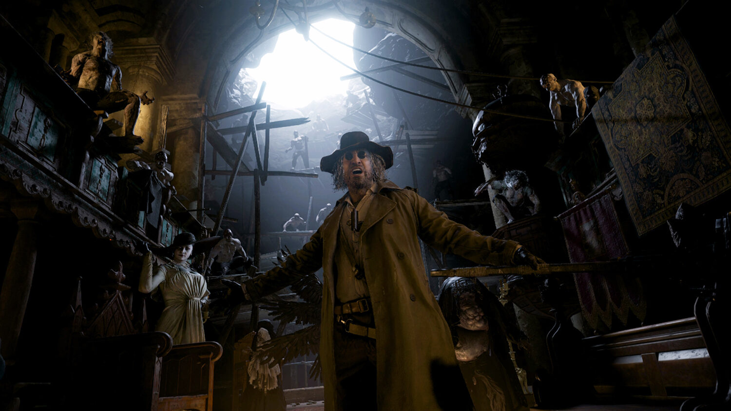 No matter. Ethan was right to be paranoid, as we don’t even get through one dinner before his wife is killed by Chris Redfield, of all people, and his infant daughter is kidnapped. Why? Only one way to find out…escape into the woods and stumble into a seemingly abandoned village at the base of an imposing, gothic castle.