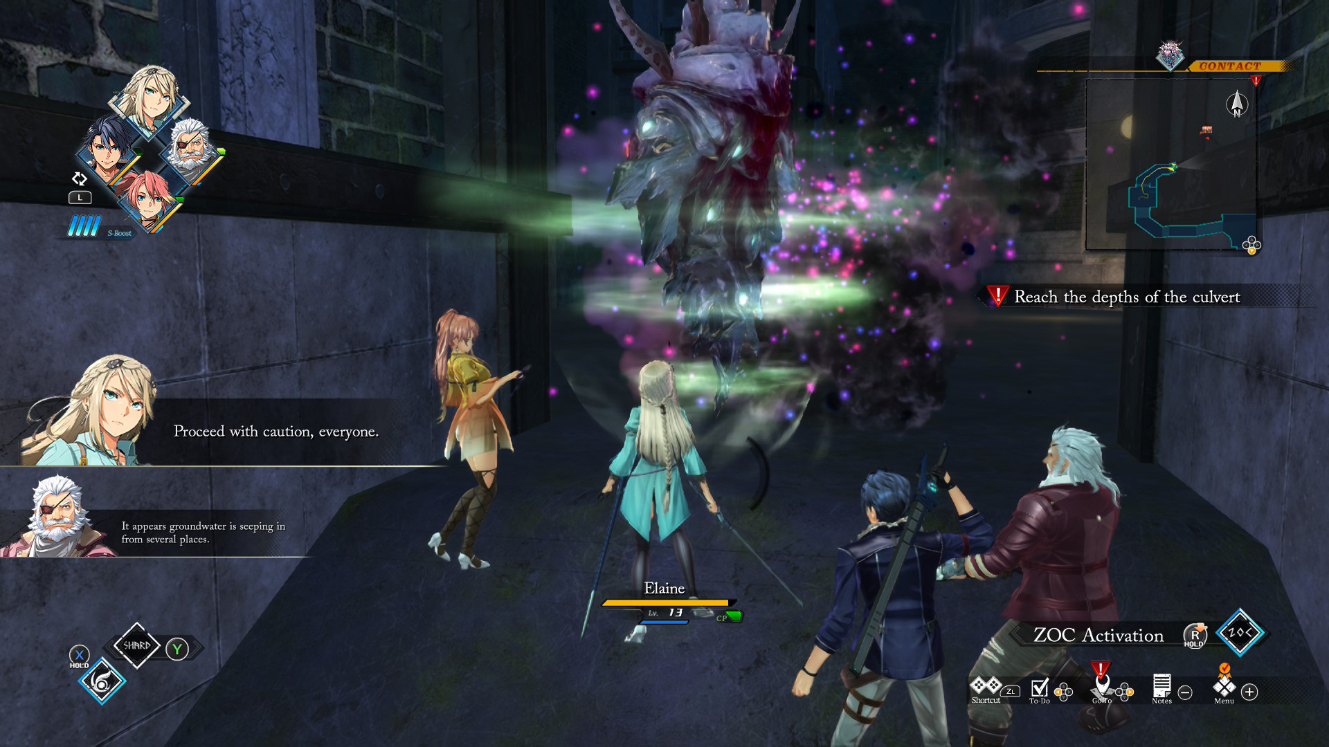 The gameplay furthers the push away from the traditional turn-based combat of the early games to the active combat of the most recent entries. Technically, you can fight all battles in turns, still utilizing the combination of attacks, buffs, and arts that you customize and upgrade as you see fit. A timeline shows when you and the enemies get their turn, as well as which bonuses may come with that turn. The main bosses still have to be fought in this manner, but lesser opponents can be attacked in the active time on the field. Trails Beyond the Horizon enhances this feature with new abilities such as an Awakening power and party chain attacks. You can now use arts against enemies without having to engage in turn-based combat. This all speeds up the gameplay when you’re working your way through the dungeons. That’s good. But it also makes the turn-based combat feel like a chore. That’s bad, considering it’s the very core of the series.