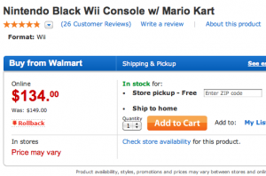 Wal-Mart: Wii Mario Kart bundle for $134